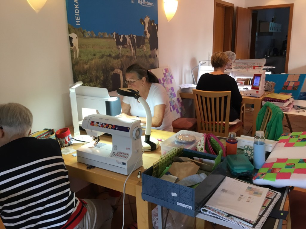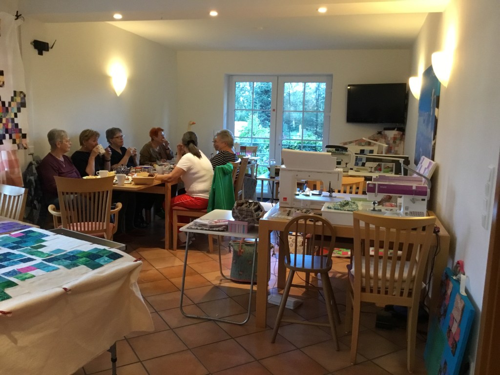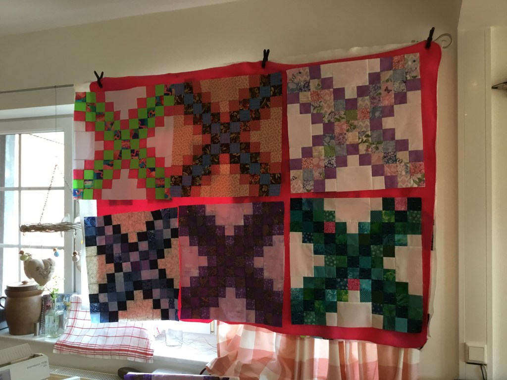 This year I went to Hamburg.We stayed on a working farm just outside the city.The amazing group not only quilted all day but made all the very delicious food too !The blocks went together quickly.Not two the same.This one makes me think of the sea.Hard at work. With delicious lunch breaks. Then back to the machine.Then cake❤️A walk in the beautiful garden. Or a cup of tea here. What a fabulous weekend, thank you so much, Quiltmädels it was a real pleasure working with you..