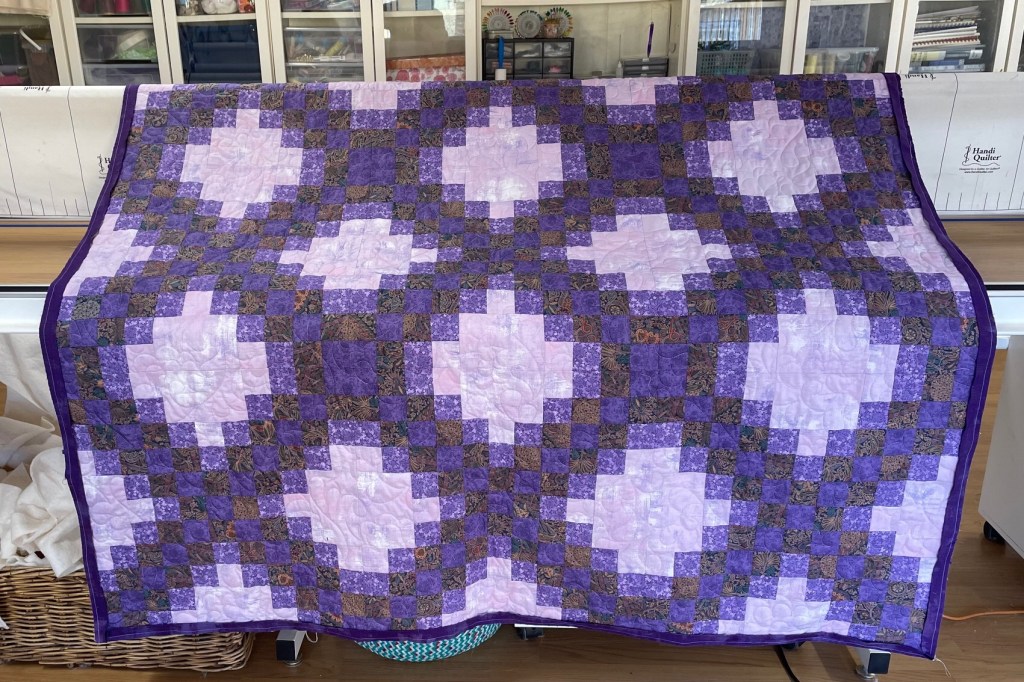 A bundle of pillows for the shop.It’s been a while since I quilted on my small sit down machine.I really enjoyed it.What a beautiful giant!With giant feathers, what else.100’s oh tiny diamonds.More feathers.A fine finish for one of my “onsdags pigerne girls”Loads more diamonds in beautiful blues.100 x 6.5” square blocks!Lightly custom quilted.Loving the back!2.5 mtr x 2.5 mtr!😮E2E quilted with a geometric design. Teal blues, my favorite colours.Quilted with a light teal thread.Not too heavily quilted for softness.A teal elephant ❤️With a crown.Hand stitched tumbling blocks.All over quilted with a Baptist fan design.Bold and bright!E2E with a purple thread.Irish chain purple.Quilted with lilac thread using the fern Panto.The back, looks like another quilt..Irish chair lilac.Quilted with a leafy design with lilac thread.Blue Irish Chain.Quilted with the fern design.Irish Chain green with adorable splashes of pink!Quilted with swirly feathers.Pink and green lemonade! This quilt fizzes with life!Quilted in lime green thread with swirls and leaves.Classic Irish chain in reproduction fabrics, a beautiful quilt.Quilted with an all over feather meander.Big purple Irish chain.Classical.Quilted with a classic feather meander.Blue and cream classic sampler made by Susanne in my onsdags pigerne Claus.Simply custom quilted.Giant Drunkards Path quilt made by Grethe in my Onsdags pigerne class.Quilted with an all over feather design.A vintage quilt top, huge!Quilted with a meander in the middle.With feather borders.A little star quilt, quilted with a ribbon candy meander.Breeze helping me with a small quilt I made for myself.Made completely with scraps and old tablecloths.Some pillows.For the Bears paw class.Don’t you just love red and whiHenrik’s tractor pillow.Super stars.Quilted with a feather meander.Not quilting but a little sewing of a vintage look nurses hat for a film maker.